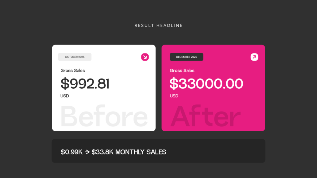Sales were inconsistent, content was irregular, and creatives failed to reflect the true identity of the brand—limiting both engagement and growth.