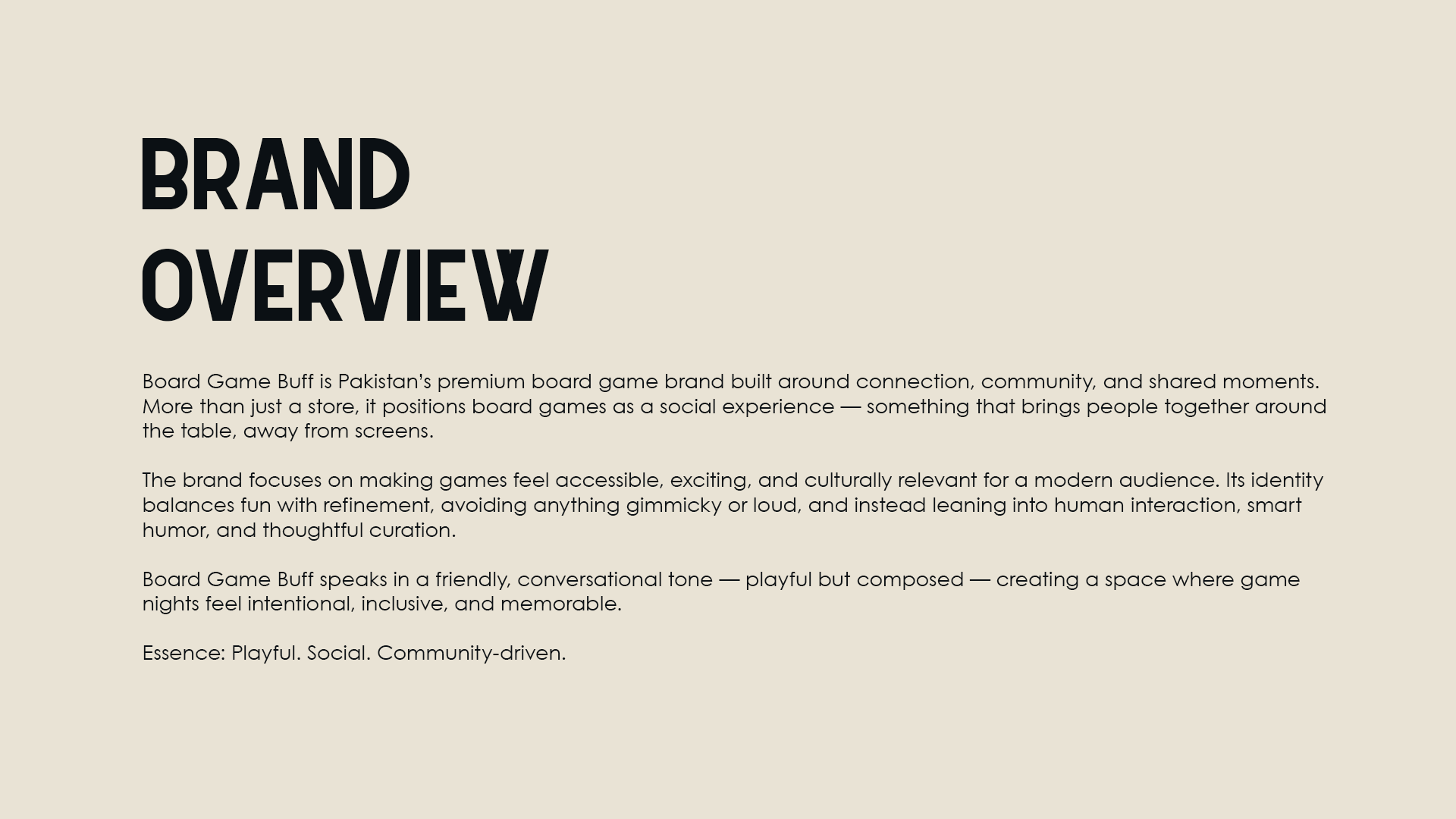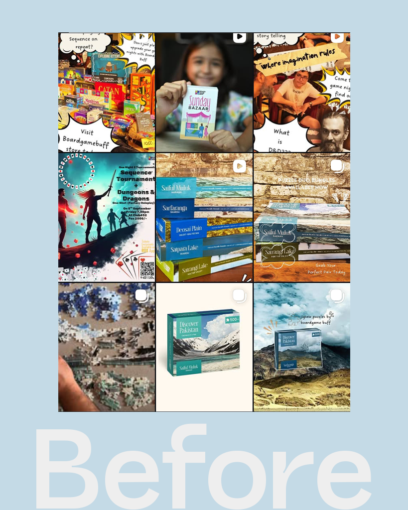 Board Game Buff is a premium board game brand in Pakistan built around connection, community, and shared moments. The goal was to shift perception from just selling games to creating a social, experience-driven brand.